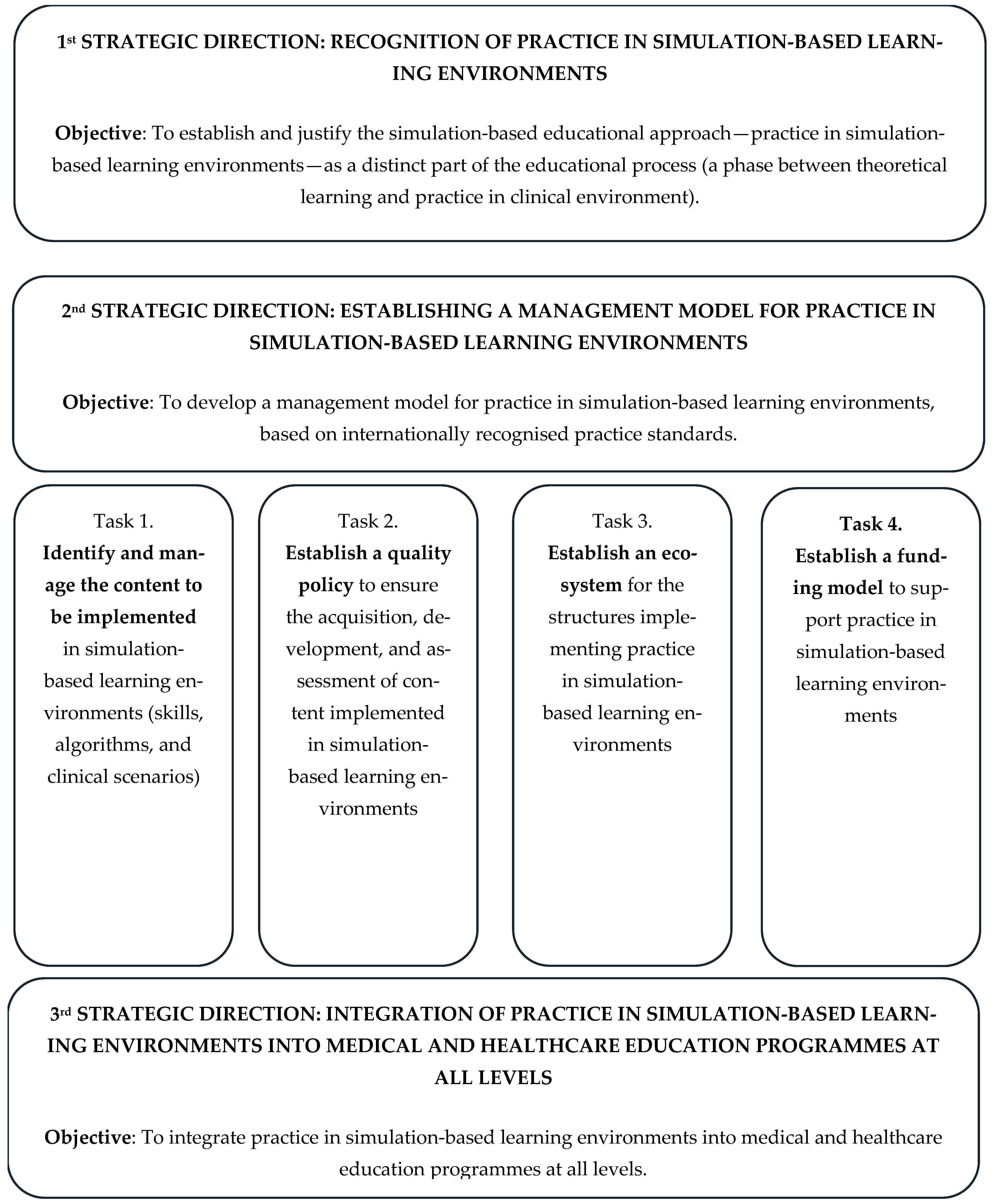 2.5. 2nd Strategic Direction: Establishing a Management Model for Practice in Simulation-Based Learning Environments