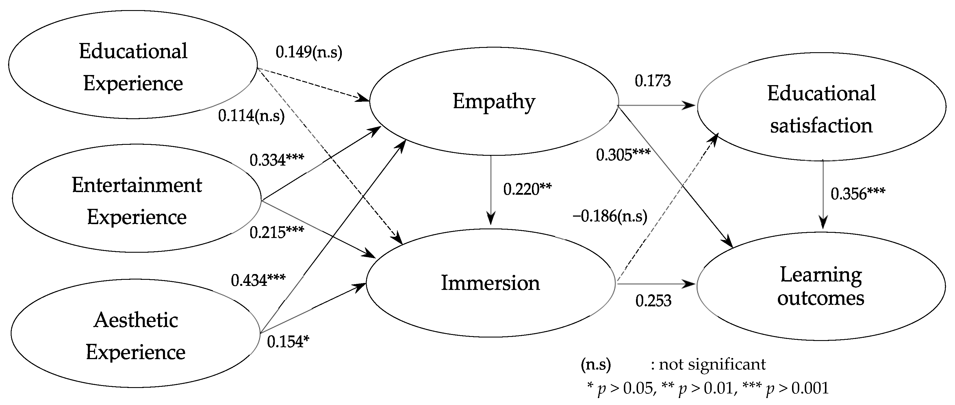 3.2.1. Effects of Educational, Entertainment, and Aesthetic Experiences on Empathy