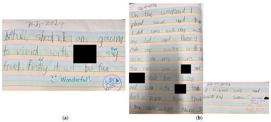 Writing development from one child. (a) Writing sample from 31 May 2024; (b) Writing sample from 24 June 2024.