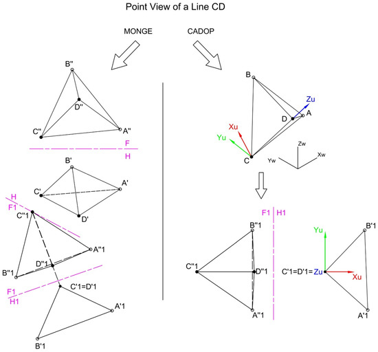 | Point View of a Line | Construct a view where the observer’s line of sight is parallel to the line. | Match UCS Z-axis to the line; the UCS top view shows the line as a point. |