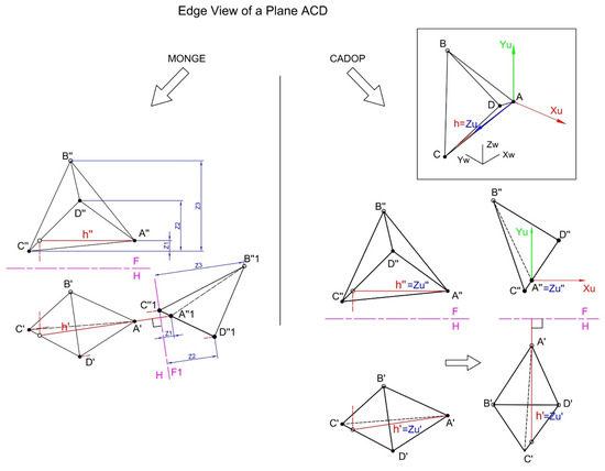| Edge View of a Plane | Find a line in the plane to appear as a point view; then construct the plane’s edge view. | Align the UCS XY-plane with the target plane; an orthogonal view to the UCS Z-axis will show the plane in edge view. |