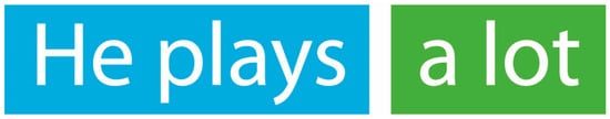 Oral chunk-based training also draws on ’s (, ) phrase structure theory. However, in this pedagogy, specific phrases—such as personal pronouns and verb phrases—can be assembled into larger units (e.g., [He plays]) or used independently. Phrases formed by combining a personal pronoun with a verb phrase are referred to as verb-conjugation sensory chunks. Note that () report that second-language learners sometimes produce non-target-like utterances such as *she go (p. 95), which may suggest incomplete acquisition of chunks. In the present study, three verb-conjugation sensory chunks ([he VERB+s], [she VERB+s], and [they VERB]) were incorporated into the chunk-based sentences practised by the experimental groups. Notably, two of these chunks ([he VERB+s] and [she VERB+s]) aligned with the sentence segments investigated in the oral sentence transformation task (see Section 2.2).