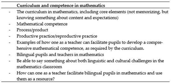 In Norway, teacher education programs generally integrate mathematics content and mathematics didactics within the same courses. Rather than completing separate mathematics courses followed by courses on mathematics pedagogy, students acquire disciplinary knowledge and didactical competence in parallel, as interconnected components of their studies. This principle is also applied in the mathematics education courses for bilingual pre-service teachers.