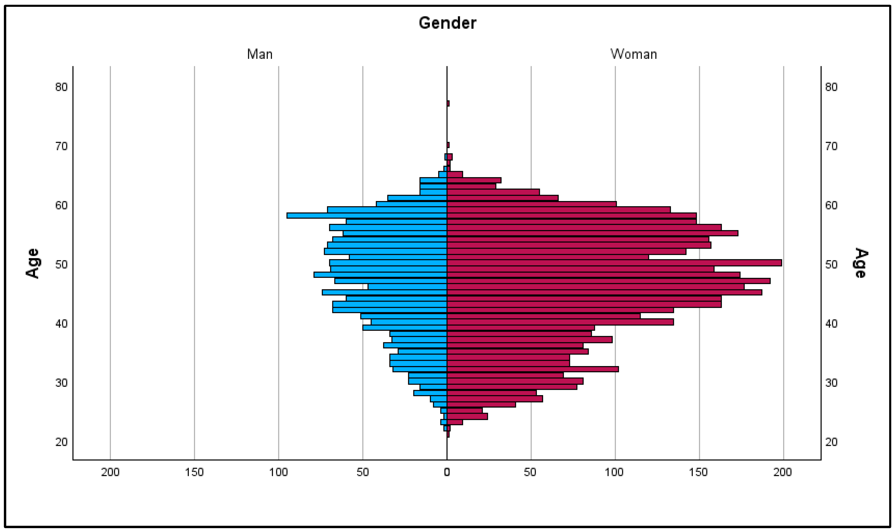 - Age: A discrete quantitative variable within an age range of 18 to 67 years (the current mandatory retirement age in Spain).