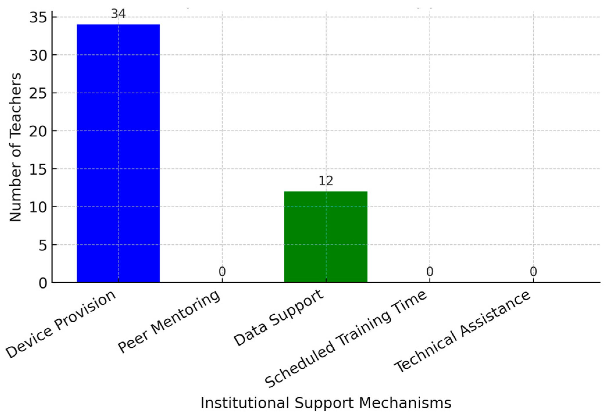 In addition, the pattern that early-career teachers recorded the highest requests for device provision and data support challenges the assumption that younger teachers require less institutional support. Rather than reflecting generational competence, this points to structural barriers such as device access and data affordability. This interpretation aligns with critiques of the ‘digital native’ narrative, which argue that age alone does not determine digital competence and that opportunity and systemic provision are decisive (