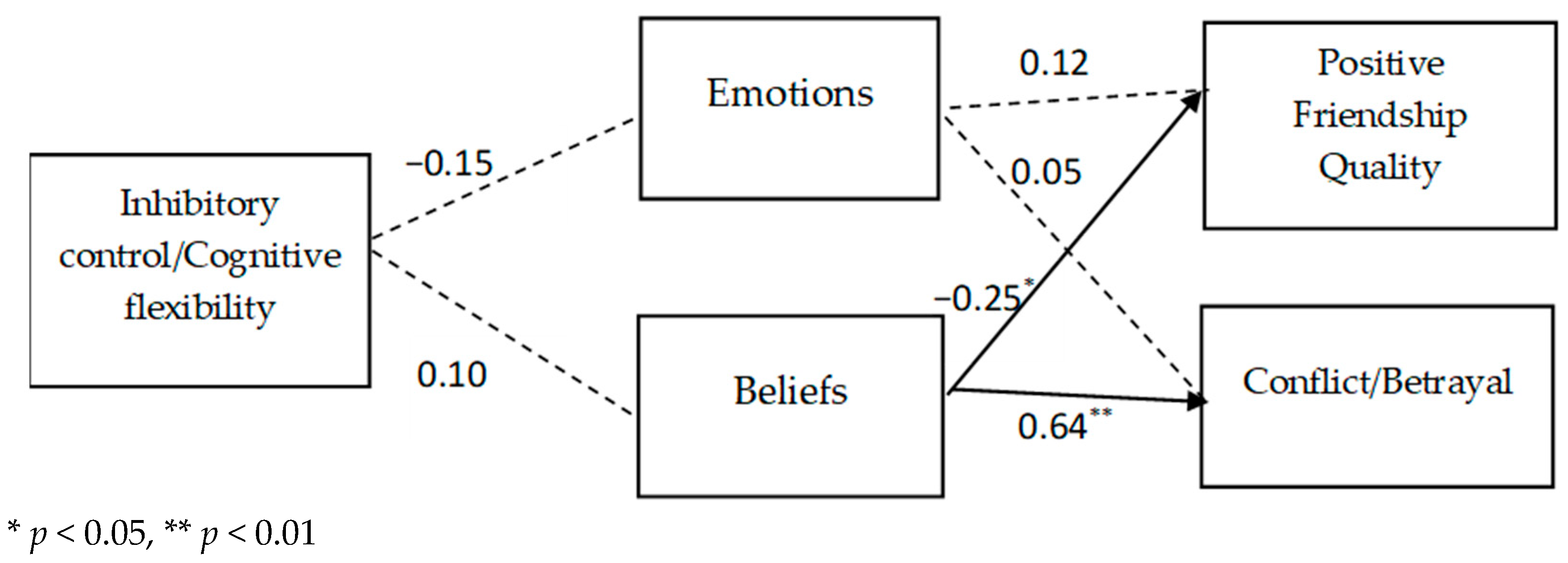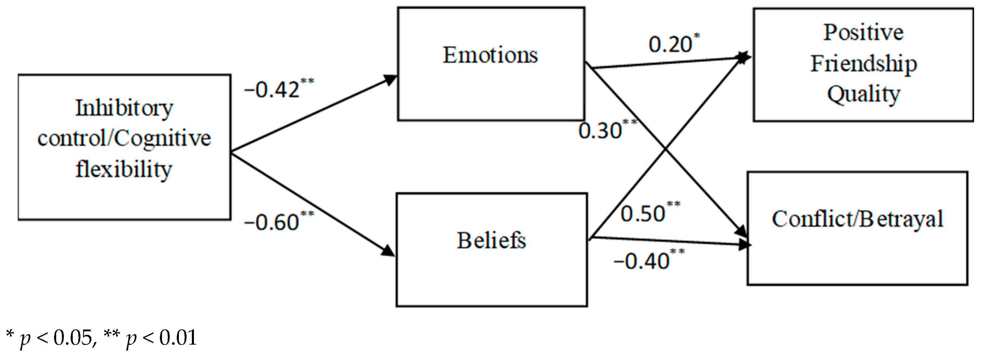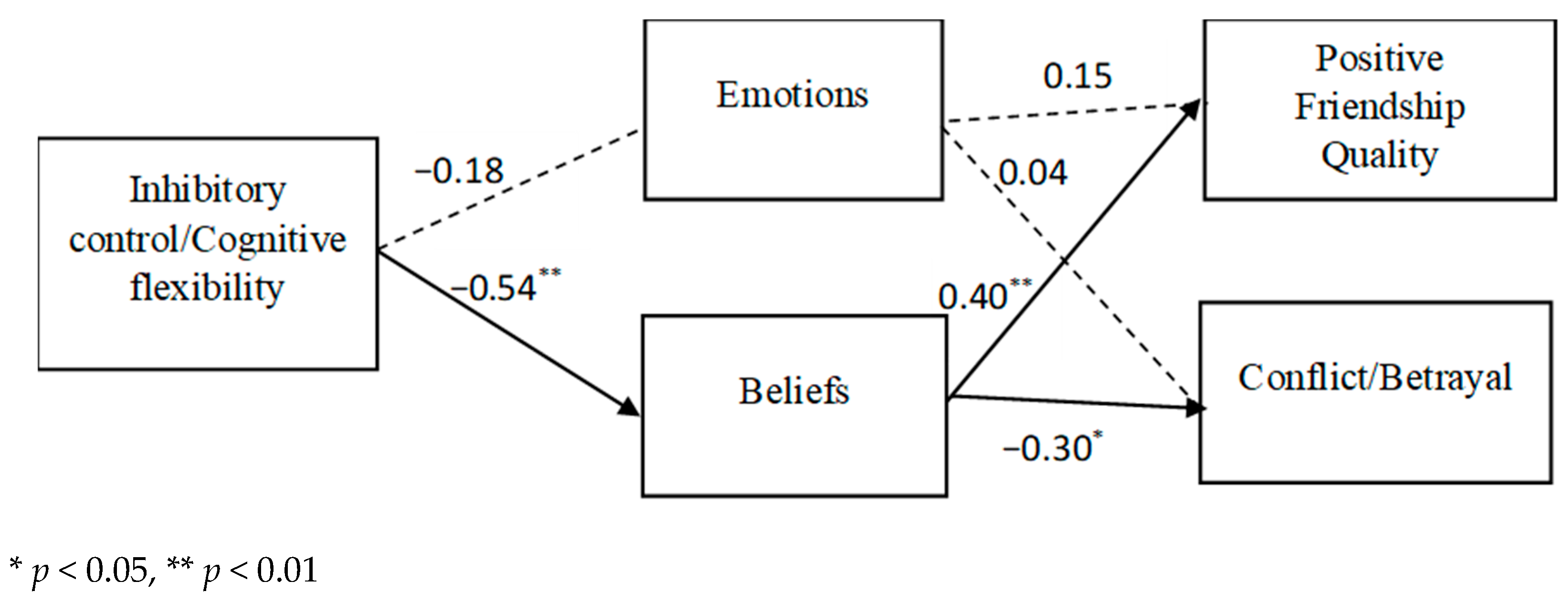 - Wang, X., & Feng, T. (2024). Does executive function affect children’s peer relationships more than emotion understanding? A Longitudinal study based on latent growth model. Early Childhood Research Quarterly, 66, 211–223. [Google Scholar] [CrossRef]