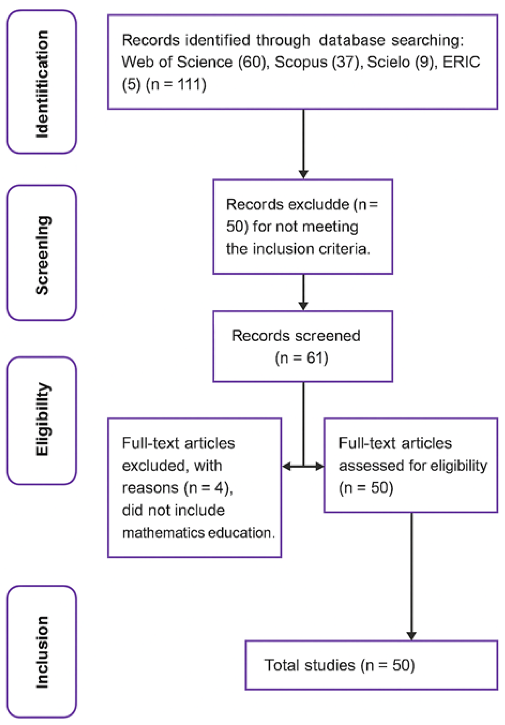 - Works focused on disciplinary content other than mathematics, even if they included the use of digital technologies or pedagogical elements.