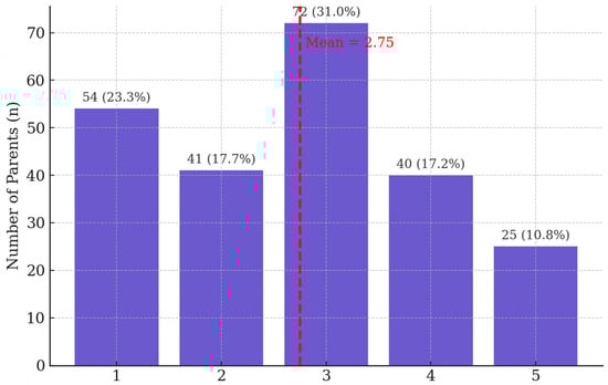Participants were asked whether their child received special education (SEN) services during the school day. In response to this question, 152 parents (65.5%) selected “yes”, confirming that their child received special education services at school, 65 (28%) responded no, and 15 (6.5%) were not sure (see Figure 2).