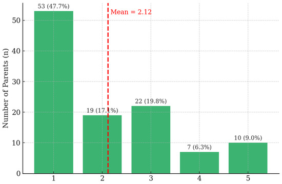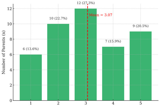 Participants who selected “yes” were asked to report approximately how many hours per week their child spent in special education (SEN) interventions. Total weekly SEN support was most commonly 1–2 h per week (63.2%), followed by 3–5 h (30.9%), 6–10 h (2.0%), and more than 10 h (2.0%). Using category midpoints to approximate continuous hours (0, 1.5, 4, 8, and 12 h for >10), the estimated mean SEN support was 3.12 h per week, with a median of 1.5 h and a modal category of 1–2 h per week. These mean and median values should be understood as approximations derived from interval midpoints, particularly for the open-ended >10 h category. Results are displayed in Table 4.