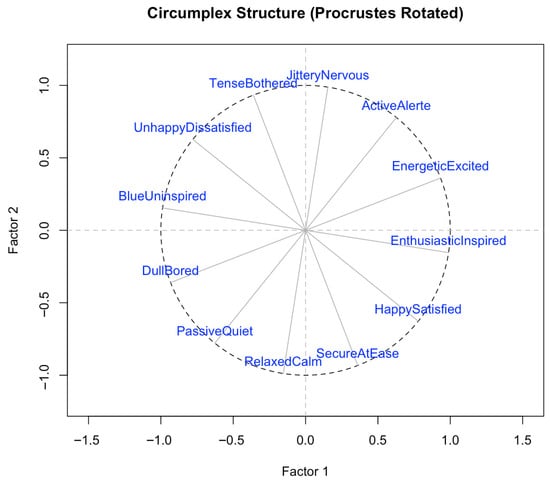 Circumplex structure of the 12 affective items following Procrustes rotation.