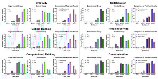 The results revealed distinct patterns depending on the type of skill. For complex cognitive skills—creativity, critical thinking, and computational thinking—the most noticeable progress was observed in the experimental group.