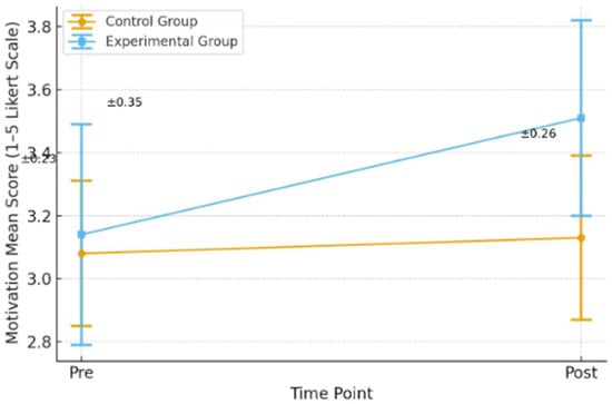 Statistical tests were then employed to ensure that the observed differences in motivation were meaningful and generalizable to a larger population. Table 6 presents the means and standard deviations of general motivation, for both the experimental and control groups at two time points (pre- and post-intervention).