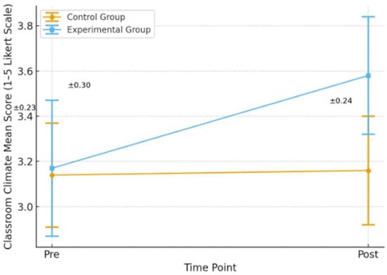 Students’ Pre- and Post-Perception of Classroom Climate Scores for both Control and Experimental Groups.