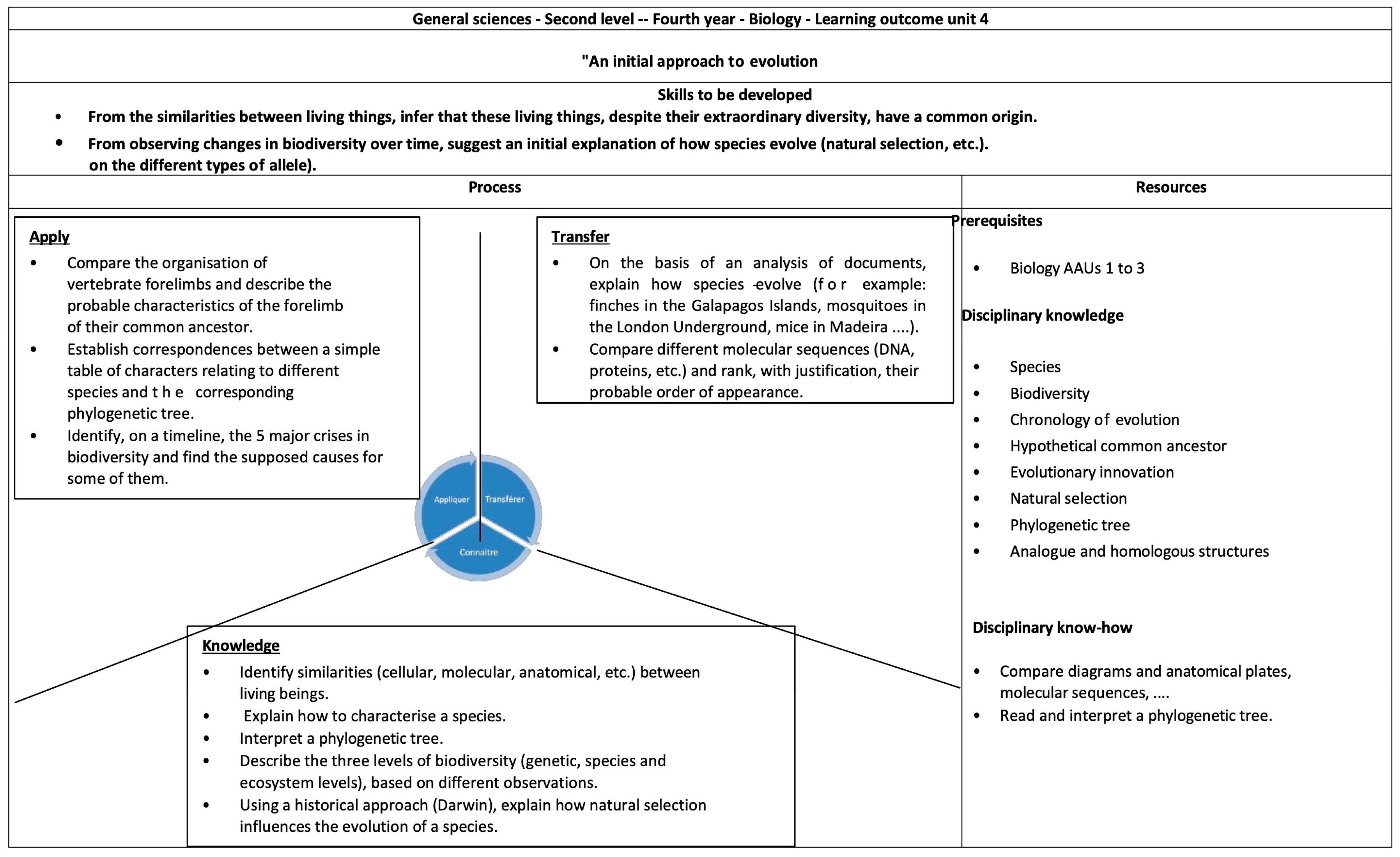 | Describe, explain and interpret a phenomenon using scientific investigation: the evolution of living organisms (C, S2) | |