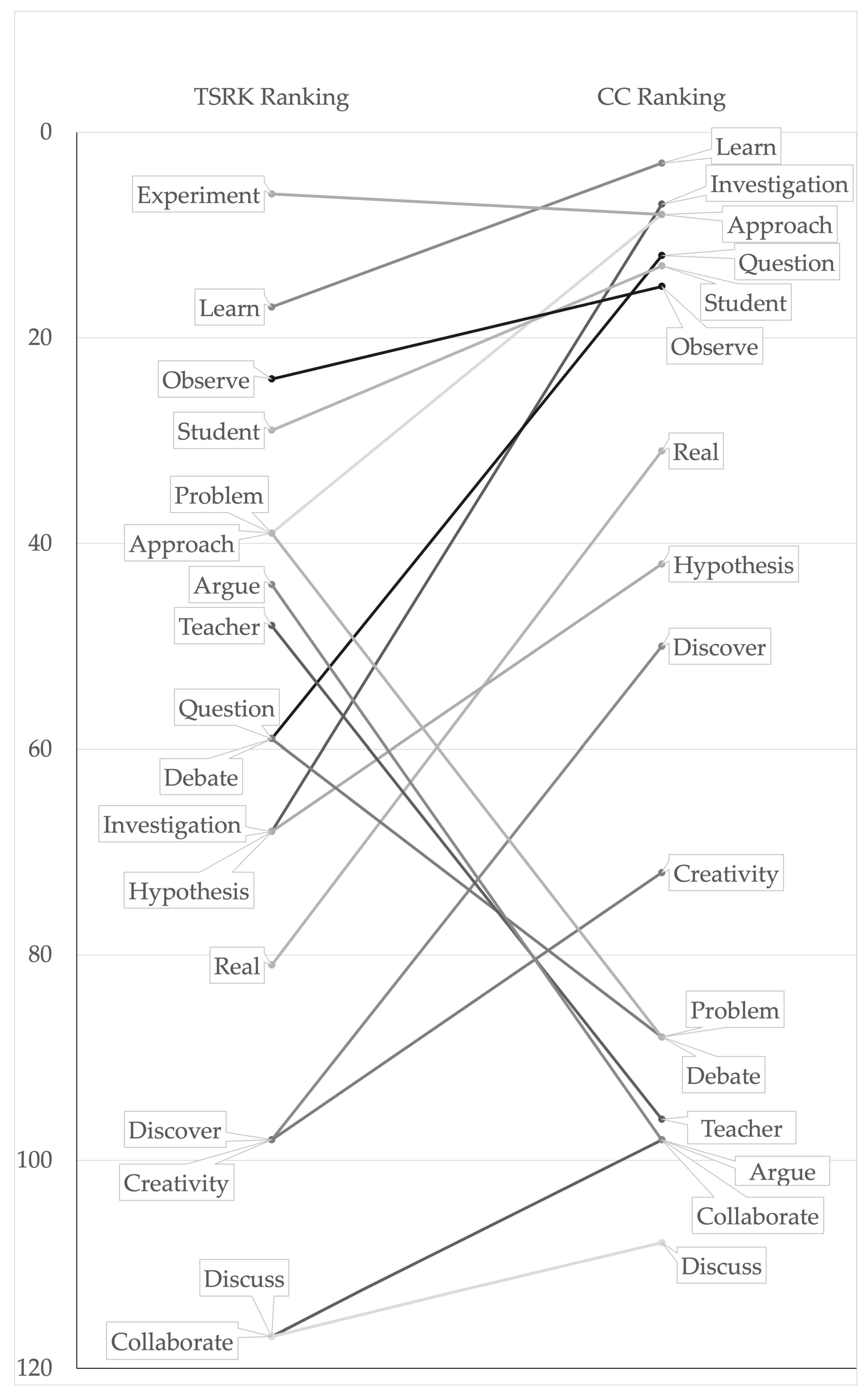 | Lemma Groups | TSRK Frequency | TSRK Ranking | CC Frequency | CC Ranking | Difference TSRK/CC Ranking (in Ranks) |