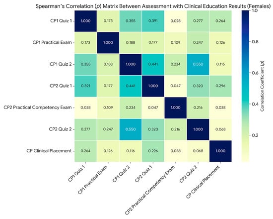 Spearman’s Correlation (ρ) Matrix Between Assessment with Clinical Education Results (Female Students).