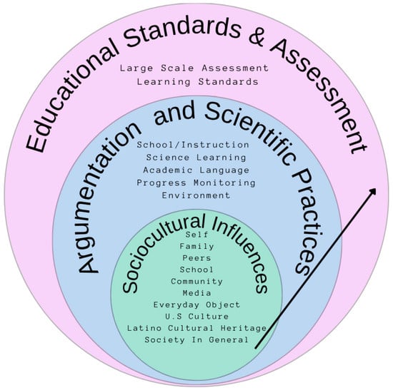 Using Ecological Systems Theory (Bronfenbrenner, 2005), learning is understood to occur within nested systems—microsystem, mesosystem, exosystem, and macrosystem—that interact with one another. Drawing from this framework, we see students’ science vocabulary development is shaped by the interplay of these systems. Influences from the home, classroom, community, and broader cultural or policy contexts influence how students understand specific concepts. Our framework emphasizes the nested, multifaceted, and dynamic nature of these interactions. Currently, many assessments do not take individual backgrounds into account (American Educational Research Association et al., 2014). Using a socioecological model of assessment, it flips the script and makes these data essential to understand better how students make sense of words.