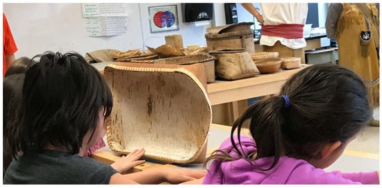 In this project, Anishinaabe artists and knowledge carriers worked with non-Indigenous classroom teachers to explore the cultural significance and mathematics of making wiigwaas makakoon (birch bark baskets). The artists spent two weeks in two grade 6 classrooms teaching students the process of basket making. They combined Indigenous pedagogy and intentionally designed inquiry tasks in order to generate mathematically related concepts. To make cultural–mathematical connections, we looked to Battiste’s characteristics of Indigenous pedagogy and explored how the learning that took place was holistic, part of a lifelong process, experiential, rooted in language and culture, spiritual, communal, and an integration of Indigenous and Eurocentric knowledges. Mathematically, students explored measurement with non-standard units, bisected angles without the use of a protractor, and explored the best way to optimize the capacity of their baskets. This work is an example of integrating Indigenous knowledge and heritage into elementary mathematics instruction.