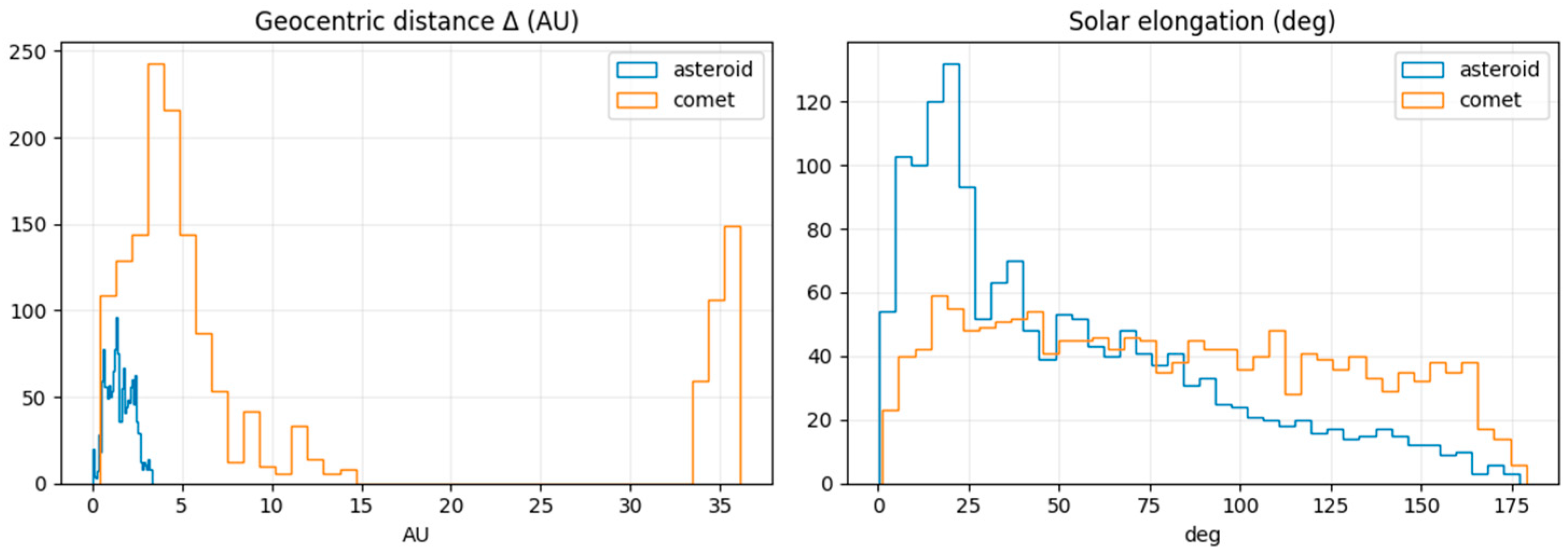 | elong_deg | Solar elongation (Sun–Earth–object angle) | degrees |