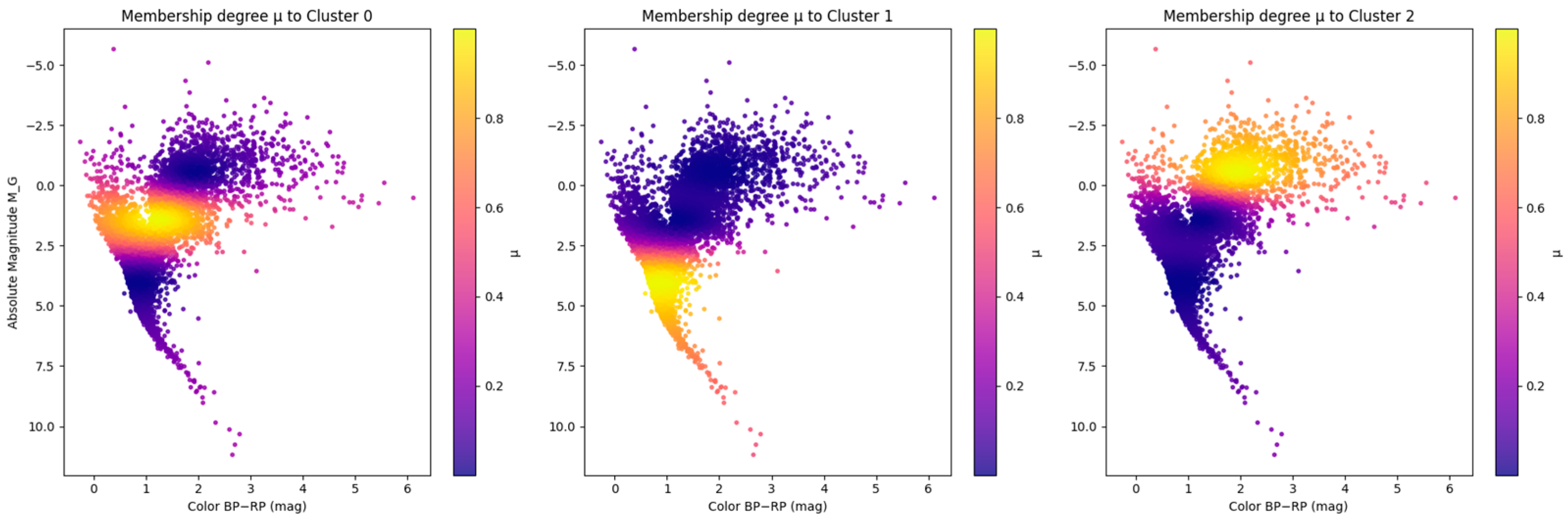 - Phase 4, Fuzzy C-Means clustering is applied to model uncertainty and identify fuzzy groupings of celestial objects based on their photometric and positional attributes.
