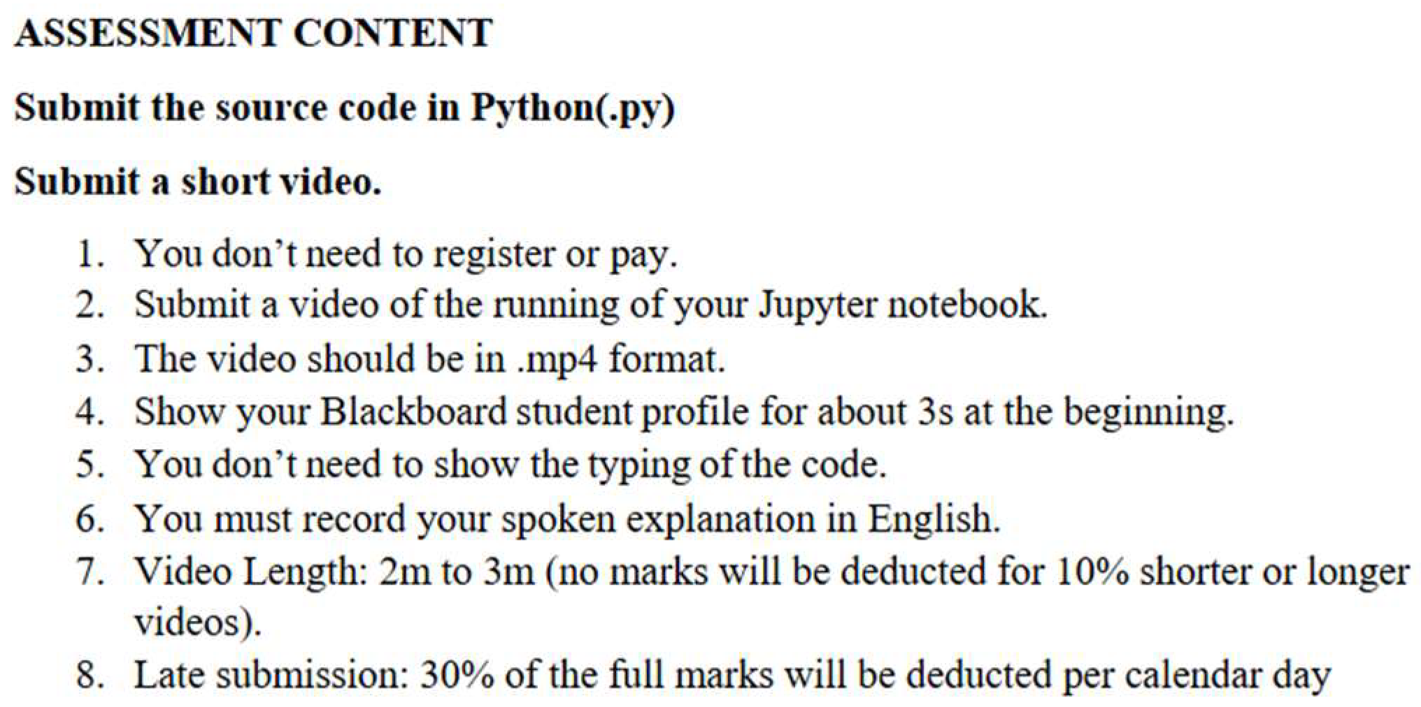 - Lye, C. Y., & Lim, L. (2024). Generative artificial intelligence in tertiary education: Assessment redesign principles and considerations. Education Sciences, 14(6), 569. [Google Scholar] [CrossRef]