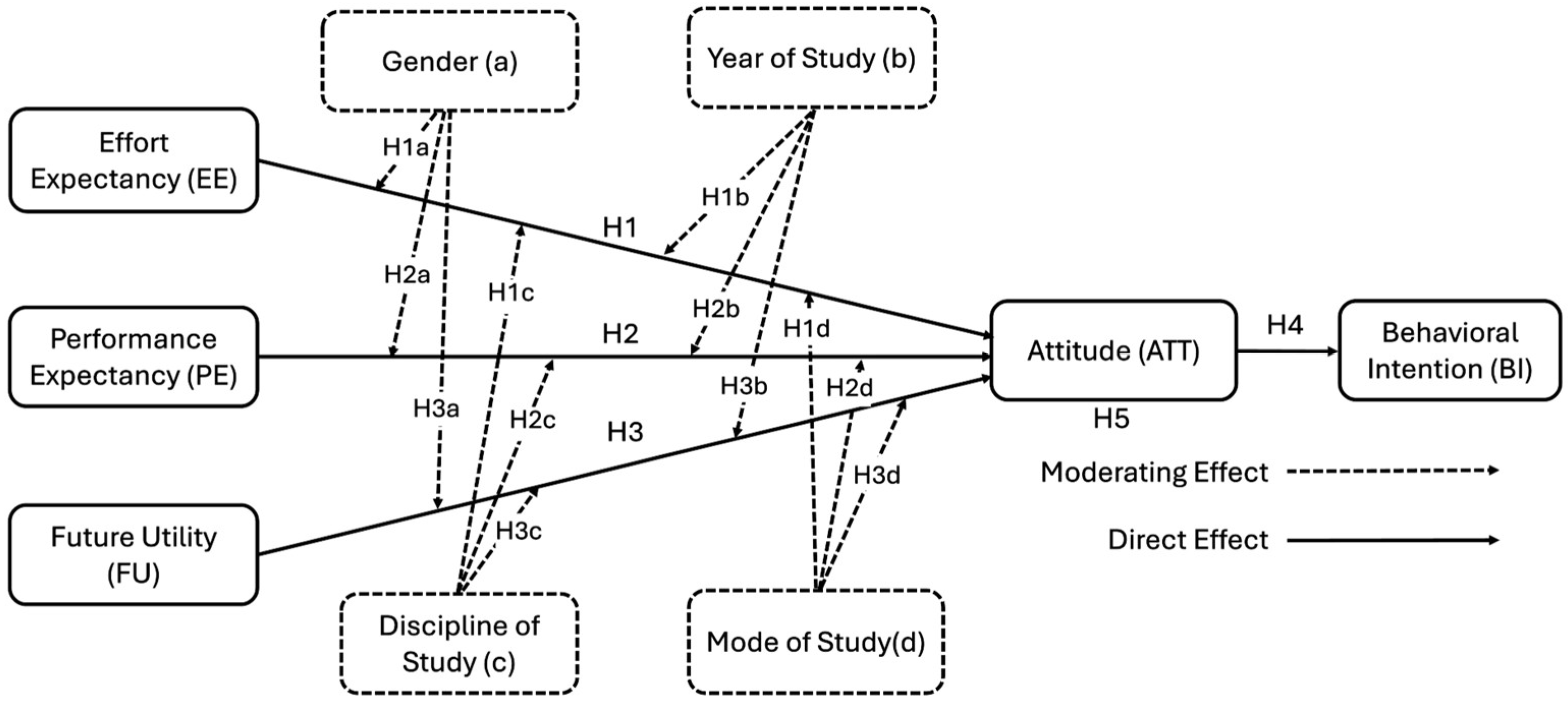 | H3c | Discipline of Study × FU → ATT | 0.068 | 0.655 | No |