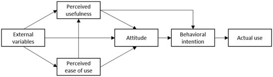 - Davis, F. D. (1989). Perceived usefulness, perceived ease of use and user acceptance of information technology. MIS Quarterly, 13(3), 319–339. [Google Scholar] [CrossRef]