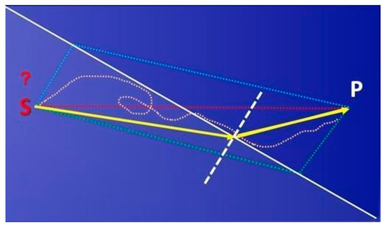 The first interaction was a variation of Fermat’s thinking exercise in 1661 (Hewitt, 1993, p. 28). The students were asked to imagine light as Superman standing on the coastline, having to save a drowning princess (Figure 5). Assuming that he moves faster on land than in water, the students were asked to draw the fastest path he can take to reach the drowning princess. Figure 5 shows the fastest path as two arrows and the suggestions presented in class. A number of students asked the teacher to define the proportion between Superman’s speed on land and in water. Instead of obtaining an answer from her, they decided to try different proportions. This move enabled a transition from a qualitative, informal description to an algebraic presentation of the refractive index concept.