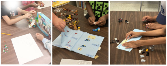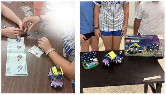 The semi-structured activities were a mix of LEGO pieces, characters, and blocks that participants could use to create a design related to a topic assigned by a camp facilitator. The final project for the camp was a semi-structured activity. Participants worked in groups of three to four to create a design that would be part of the larger amusement park that individual group designs would come together to make. The intent was for the individual design projects to come together to contribute to a large LEGO-themed amusement park. On the last day of camp, participants visited a LEGO-themed amusement park in person and saw the larger sized structures such as government buildings, racetracks, and spaceships. As participants walked around the park, they also saw the large rides that they had built similar models for.