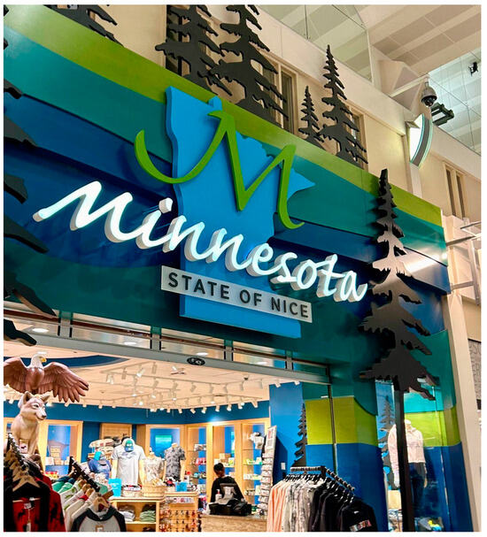 I found many depictions of Midwest Nice in public spaces, popular literature, public discourse, and social media. Understanding, recognition, and application of Midwest Nice is so pervasive in the region that it is referenced throughout the region in a wide variety of public spaces. Figure 1 is a photograph of a bumper sticker taken in Madison, Wisconsin. The bumper sticker in the photo reads, “Wisconsin You’re Among Friends”. Here, the friendliness of the state is so recognizable that this individual chose to display it on the back of their vehicle. Figure 2 displays a store called, “Minnesota State of Nice” in the Minneapolis–Saint Paul International Airport in Saint Paul, Minnesota. With its presence in the largest international airport in the state, the decision to include this store is to create a lasting impression of Niceness for visitors from around the globe.