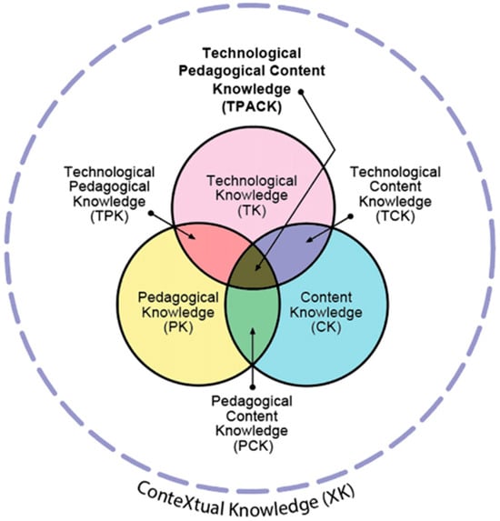 - Mishra, P. (2019). Considering contextual knowledge: The TPACK diagram gets an upgrade. Journal of Digital Learning in Teacher Education, 35(2), 76–78. [Google Scholar] [CrossRef]