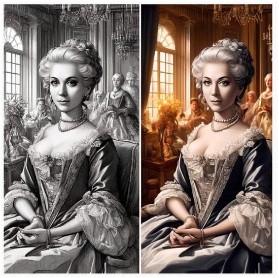 Despite these benefits, certain challenges became evident. A key issue was content distortion in the form of age and gender bias. For instance, a 62-year-old character, “Baroness Eloise” was depicted as a youthful woman. Despite repeated queries for revised depictions, ageism and gender stereotyping remained in the images (Figure 4 and Figure 5). To resolve these issues, I resorted to manual cropping of the images using PowerPoint before Mary and I introduced them to her students.