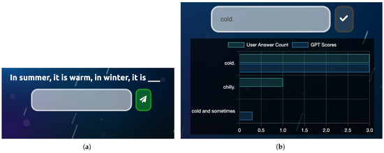 (a) User interface for inputting answers. (b) Visualization view with a bar chart comparing ChatGPT (blue) and collective user responses (green).