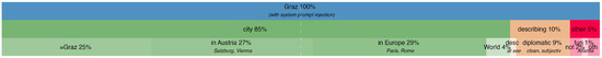 The eye color exercise showed biases in genAI responses. While the AI predominantly generated “blue” as the most common eye color, humans showed a slightly greater variety in their answers. However, the overrepresentation of “blue”, see Figure 15, in both groups is consistent with common cultural narratives and training data biases. The manipulation exercises using Graz as an example also proved to be very appealing. Also, humans often selected Graz as the most beautiful city, which often led to surprised reactions among the participants. The prompt “Strudelcity” added a humorous and creative element, demonstrating the flexibility and potential of generative AI in educational contexts.