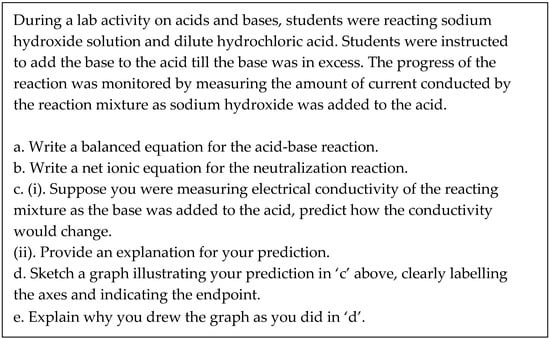 - Nyachwaya, J. M. (2016). General chemistry students’ conceptual understanding and language fluency: Acid–base neutralization and conductometry. Chemistry Education Research and Practice, 17(3), 509–522. [Google Scholar] [CrossRef]