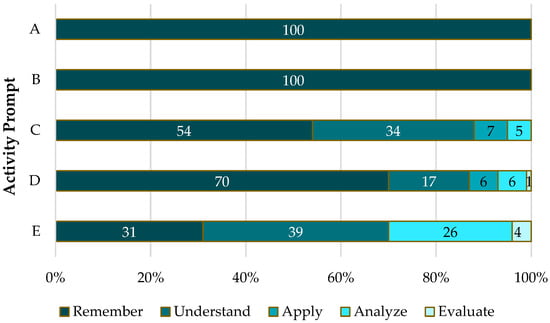 Proportion of content questions asked, ranked using Bloom’s taxonomy.