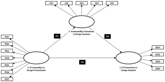 By observing the sustainable practices implemented in the professional sector, students develop an orientation toward sustainability, which refers to the cognitive acceptance of the importance of these practices for sustainable development (). In the design field, practices that integrate values of equity and social justice promote an ethical orientation in professionals and model a culture of sustainability that students tend to imitate (; ). In addition, various studies indicate that students exposed to sustainability practices in graphic design assimilate values of social responsibility and justice, thus recognizing the interdependence of the social, environmental, and economic aspects in design (; ). This initial orientation process aligns with the theoretical approach of (), who argue that orientation toward sustainability is a predictor that can facilitate the implementation of more advanced practices. Institutional Theory, as well as the approach based on community development in SS, suggests that the academic and professional environment promotes a cultural integration of these values, consolidating the orientation to sustainability in students (; ). Therefore, the first hypothesis of this work can be deduced: