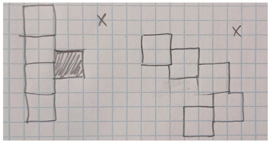 - Putting a square in the middle, in other words, not joining sides and putting a square against two sides of other squares… Not putting side against side. Like this [draws Figure 3]. With regard to incomplete answers… We consider groups that reach less than 12 pentominoes, don’t we? (S4)