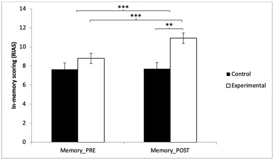 Inter- and intragroup comparisons regarding memory. ** p < 0.01. *** p < 0.001.