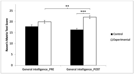 Inter- and intragroup comparisons regarding general intelligence. ** p < 0.01. *** p < 0.001.