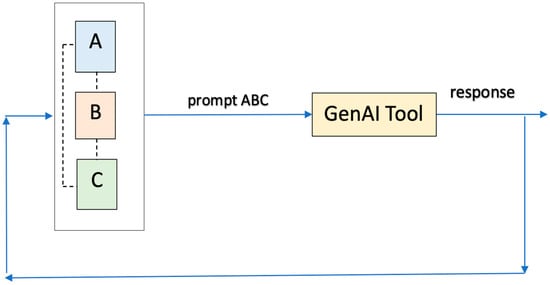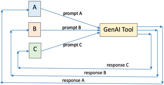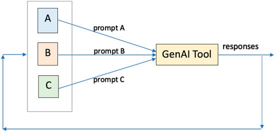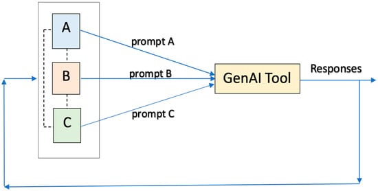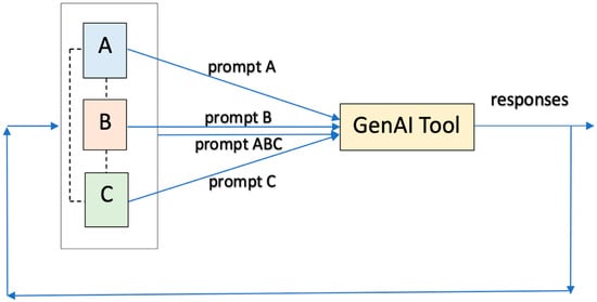 Figure 2. Collaborative Mode #1 (one in a row) of team members A, B, and C when interacting with the GenAI tool. - (2)