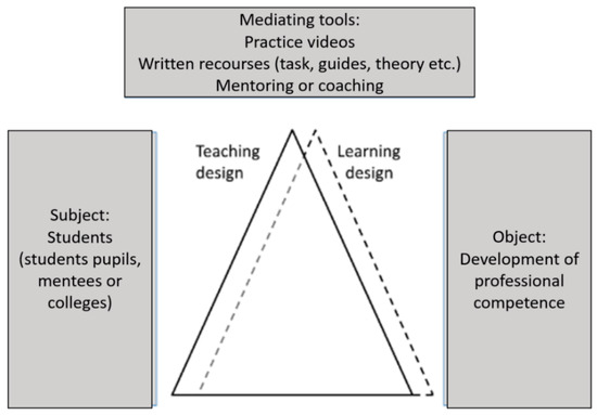 Further, the written tasks investigated in this study are intended to define and structural activities in which subjects use tools to reach the objective. Given such an understanding of written tasks, we treat them as expressions of designs. As visualized in the model presented by Vestøl (2016), such designs can be analytically divided into “teaching design” and “learning design”. Teaching design is understood as design for teaching developed by university-based educators while learning design is developed by students as they interact with the teaching design. When the elements (subject, mediating tool, and object) interact, the student transforms the teaching design presented by educators into a learning design. The learning design can be understood as the enacted design, while the teaching design is the intended design (Hauge, 2014; Vestøl & Lund, 2017). Hauge (2014) describes enacted design as “what actually happens when teachers and learners engage in joint construction of the learning object” (p. 314). For instance, the intention of video-based designs (the teaching design) could be to facilitate the mentor students’ analytical approach to their own mentoring, further enhancing the understanding of their own mentoring and mentoring competence. To facilitate such processes, the teaching design could be a task encouraging mentor students to capture a naturally occurring mentoring session. However, the mentor student engaging with the teaching design has different individual characteristics and several contextual aspects to take into account. Issues such as time, access to mentees, technical challenges, and stress related to being filmed can be obstacles to capturing naturally occurring mentoring. As such, the enacted design (the learning design) can differ from the intended design, for instance, by being less authentic than encouraged by the teaching design.
