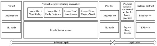 It is important to mention that the intervention took place during the practical sessions—which shifted from subtitling-based lesson plans during the intervention to traditional textbook-based practices afterwards—whilst the theoretical lessons remained consistent throughout the course. In that way, the design, despite its limitations, aims at isolating the impact of the subtitling tasks on proficiency and intercultural awareness over time.