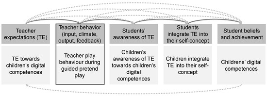 Teacher expectations and their relation to students’ achievement (Brophy & Good, 1970; West & Anderson, 1976; McKown & Weinstein, 2008) adapted to expectations and digital competencies. Note. The dark grey boxes show the theoretically assumed and (partly) empirically tested relation between teacher expectations and student achievement in school. The light grey boxes below describe the assumed adaptation for guided pretend play in early childhood education.