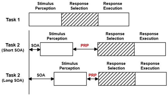 - Welford, A. T. (1952). The psychological refractory period and the timing of high-speed performance—A review and a theory. British Journal of Psychology, 43(1), 2. [Google Scholar] [CrossRef]