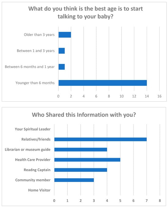 Toward the end of the project, we visited each laundromat for a final time and gave a brief 6-item survey from the Child-Family Information survey (Child-Family Information Survey, NIH) to caregivers with children who were doing laundry on a particular weekend day. The items asked caregivers: (1) whether they were a resident of the local community; (2) the child’s age; (3) whether anyone in their family and community ever communicated about the importance of talking with their child; (4) who shared the information; (5) what the best age might be to start talking to their baby; and (6) who shared the information with them, adding the option of Reading Captain among the items. Twenty-two caregivers responded to the survey across the three laundromats at the end of the Phase 2 observational period.