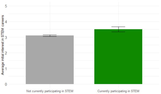 Initial Interest in STEM careers differs based on STEM activity. Note. Most participants were not currently participating in STEM (n = 1467) compared to students currently participating in STEM activities (n = 138).