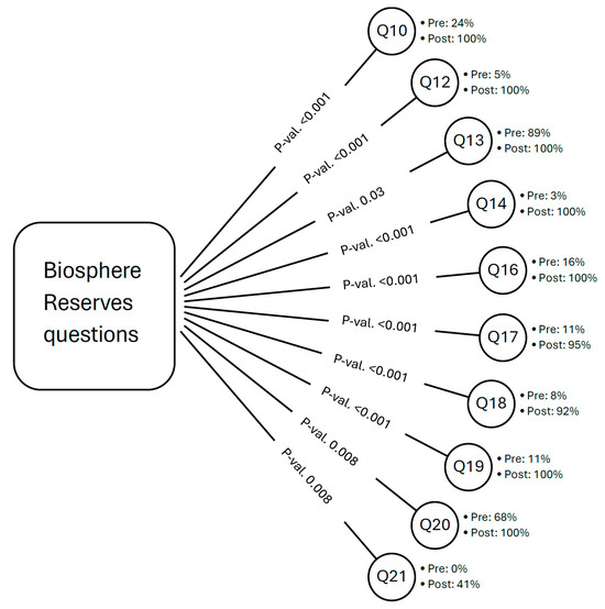 The pre-test allowed for an initial assessment of students’ knowledge and perceptions regarding the conservation of biosphere reserves and the principles of sustainable development.