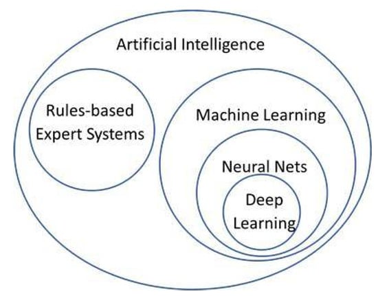 Relationships within AI (based on https://www.researchgate.net/figure/Venn-diagram-of-artificial-intelligence-AI-machine-learning-ML-neural-network-deep_fig1_359100075 (accessed on 12 December 2024)).