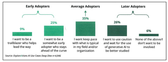 - Relyea, C., Maor, D., Durth, S., & Bouly, J. (2024). Gen AI’s next inflection point: From employee experimentation to organizational transformation. QuatumBlack AI by McKinsey, McKinsey&Company. Available online: https://www.mckinsey.com/capabilities/people-and-organizational-performance/our-insights/gen-ais-next-inflection-point-from-employee-experimentation-to-organizational-transformation (accessed on 20 September 2024).